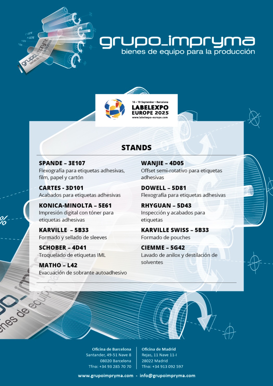 Todo el equipo del Grupo IMPRYMA estará presente en BARCELONA para atender a nuestros clientes en los stands de nuestras representadas.